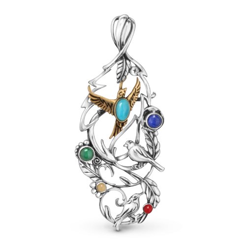 American West Fritz Casuse Mixed Metal Multi Gemstone Tree of Life Pendant Enhancer
