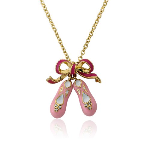 Little Miss Twin Stars 14k Gold-Plated Pink Enamel Bow and Ballerina Shoes Pendant Chain Necklace