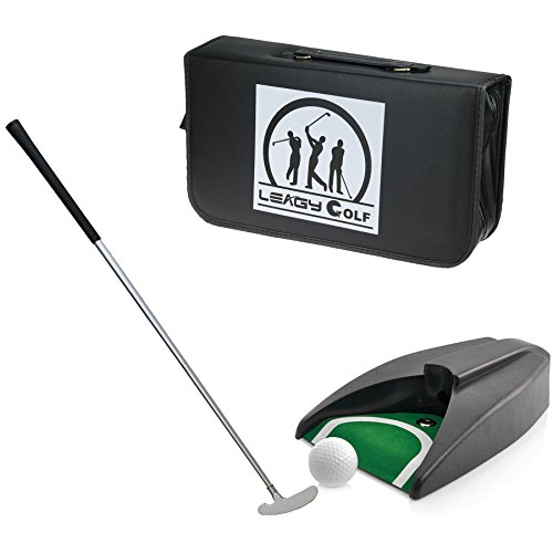 LEAGY Portable Golf Putter Travel Practice Putting Set with Case Indoor Outdoor Yard, Golfer Kids Toy Indoor Golf Games Set, Ball Return System Zink Alloy Putter Best Gift Executive Office Putter Set