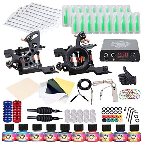 Dragonhawk Complete Tattoo Kit 2 Machine Gun 10 Color Inks Power Supply