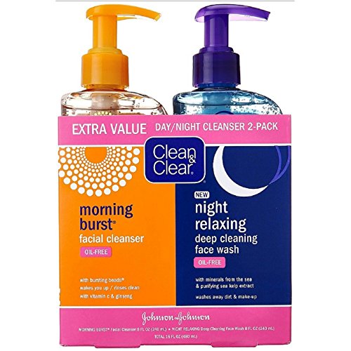 Clean & Clear 2-Pack Day and Night Face Cleanser Citrus Morning Burst Facial Cleanser with Vitamin C and Cucumber, Relaxing Night Facial Cleanser with Sea Minerals, Oil Free & Hypoallergenic Face Wash