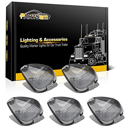 Partsam 5PCS Cab Marker Smoke Covers Lens Clearance Top Roof Running Light Lens Compatible with Ford F-150 F-250 F-350 F-450 F-550 Super Duty Pickup Trucks 1999-2016