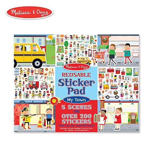Melissa & Doug Reusable Sticker Pad - My Town, Extra Large Sticker Activity Pad, Removable Backgrounds, 200 Cling-Style Stickers, 14.05" H x 11.05" W x 0.2" L