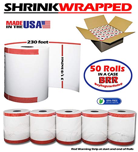 Shrink Wrapped 3 1/8 x 230 thermal paper roll 50 pack cash register thermal Paper 10 Pack of 5 Shrink Wrapped No BPA Made In USA