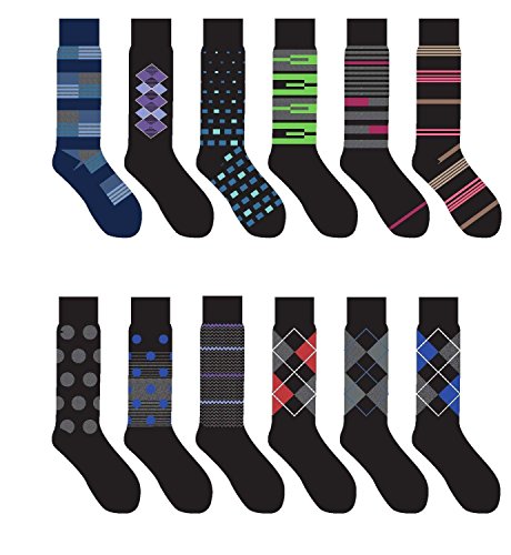 DT 12 Pairs Men's Multi Color Printed Design Fashion Dress Socks Size10-13#MD1007F