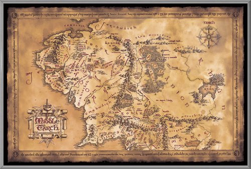 The Hobbit/The Lord of The Rings - Framed Movie Poster/Print (Map of Middle Earth - Limited Dark/Sepia Edition) (Size: 36 inches x 24 inches)