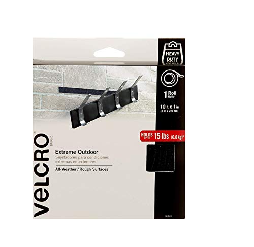 VELCRO Brand Industrial Strength Fasteners | Extreme Outdoor Weather Conditions | Professional Grade Heavy Duty Strength Holds up to 15 lbs on Rough Surfaces | 10 ft x 1 inch Tape, Black