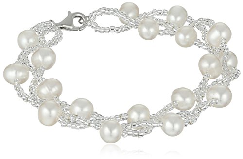 Bella Pearl Sterling Silver and Chinese Freshwater Cultured Pearl Beaded Bracelet