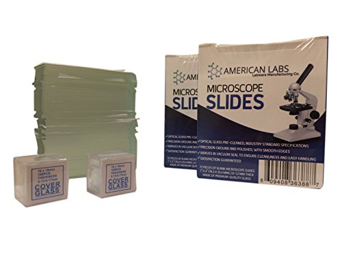 American Labs BS-144P-200S-22-A 144 Blank Microscope Slides and 200 Cover Glass Pre Cleaned - 2 Packs Ground Edges