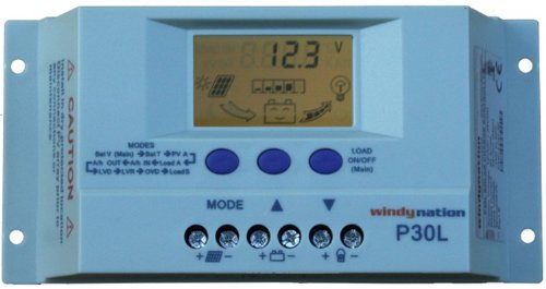 WindyNation P30L LCD 30A PWM Solar Panel Regulator Charge Controller with Digital Display and User Adjustable Settings