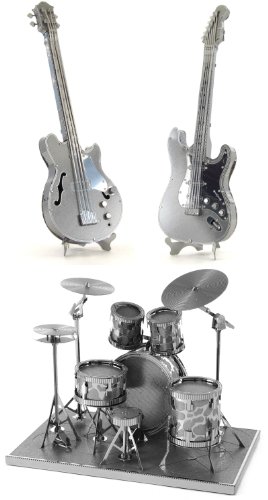 Metal Earth 3D Laser Models Musical Instrument Set of 3 - Drum Set, Electric Bass Guitar, Electric Lead Guitar