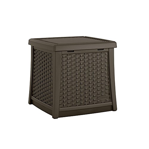 Suncast Elements End Table with Storage - All-Weather, Lightweight, Resin Constructed Patio Table for Storage of Patio Accessories - Outdoor Storage Box with 13 Gallon Capacity - Java