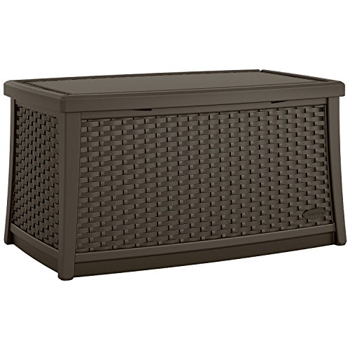 Suncast Elements Coffee Table with Storage - All-Weather, Lightweight, Resin Constructed Patio Table for Storage of Patio Accessories - Outdoor Storage Box with 30 Gallon Capacity - Java