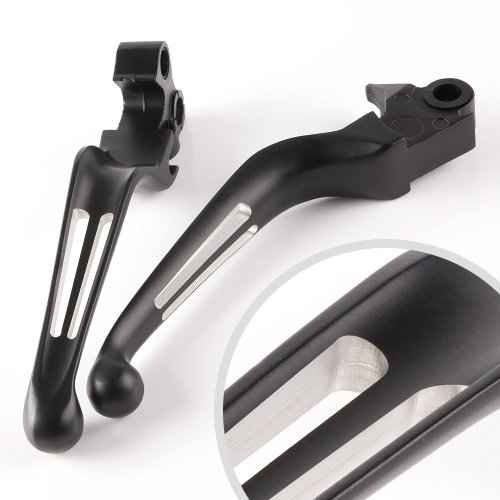 KiWAV Slotted Cut 10202 2-Color Ergonomic Hand Control Levers Black for Harley Davidson OEM #45075-07, 45459-07