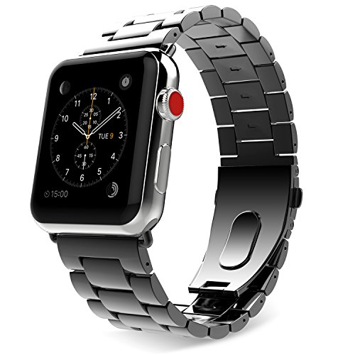 MoKo Compatible Band Replacement for Apple Watch, Stainless Steel Metal Replacement Band with Double Button Folding Clasp Fit iWatch 42mm 44mm Series 4/3/2/1 - Space Gray (Not Fit iWatch 38mm 40mm)