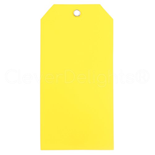 200 Pack - CleverDelights Yellow Plastic Tags - 4.75" x 2.375" - Tear-Proof and Waterproof - Inventory Asset Identification Price Tags