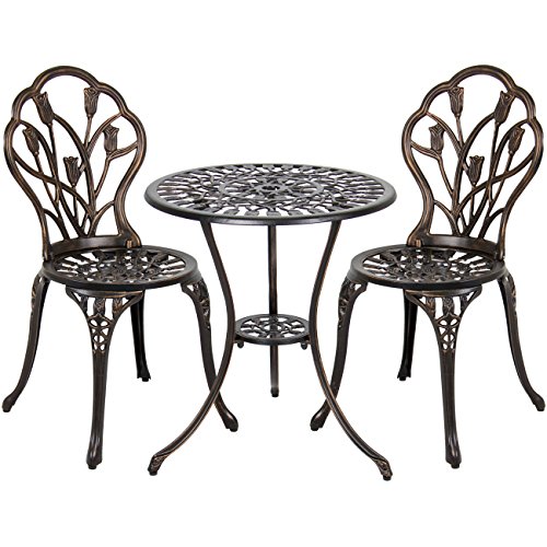 Best Choice Products 3-Piece Cast Aluminum Patio Bistro Set, Outdoor Furniture w/ Tulip Design, Antique Copper Finish, Rust-Resistant