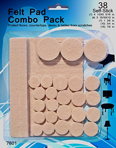 Felt Pads - 38 Pack Various Sizes, Self Stick Heavy Duty Chair Floor Protectors, Glides for Furniture, Bar Stools, Lamps, TV's - Flooring Protection for Hardwood, Laminate, Linoleum, Tile.
