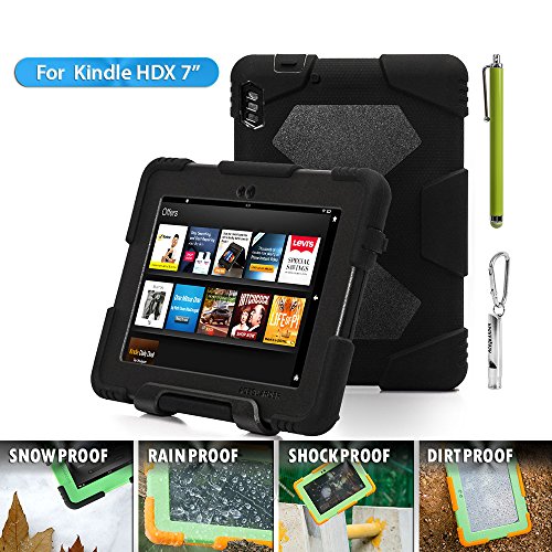 ACEGUARDER Shockproof Case for Kindle Fire HDX 7” Rainproof Waterproof Shockproof Kids Proof Case for Kindle Fire HDX 7”(only Fit Kindle Fire HDX 7 2013) (Gifts Outdoor Carabiner + Whistle + Handwritten Touch Pen) (BLACK)