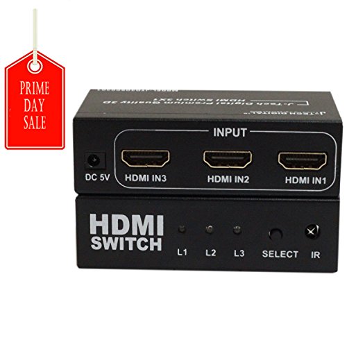 J-Tech Digital JTD3DSP0301 3-Port High Speed HDMI Switch with IR Wireless Remote and AC Power Adapter