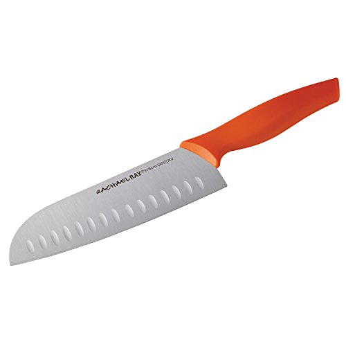 Rachael Ray Cutlery 7-Inch Japanese Stainless Steel Santoku Knife with Orange Handle and Sheath
