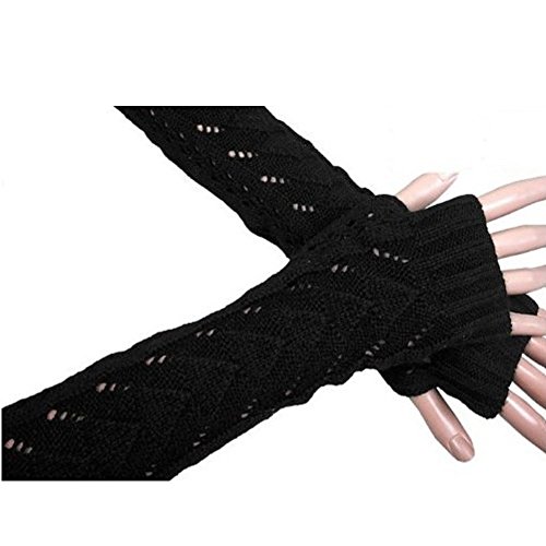 FuzzyGreen® Lady Long Stretch Weave Knit Arm Warmer Fingerless Hollow Out Gloves