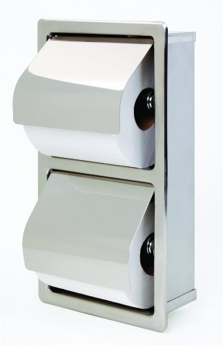 Bradley 5127-000000 Stainless Steel Recessed Mounted Hinged Hood Stacking Rolls Toilet Tissue Dispenser, 6-1/2" Width x 12-1/4" Height x 3" Depth