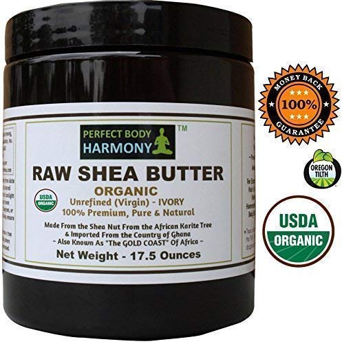 Certified ORGANIC RAW SHEA BUTTER, Huge 17.5 oz Tall Amber BPA Free Jar Unrefined, Virgin, Ivory White (Tan) Premium Quality Made in Africa From The Shea Nut; Best Non-comedogenic Natural Moisturizer.