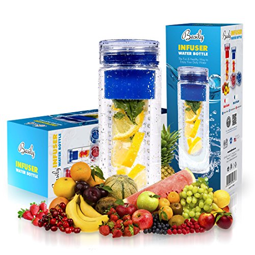 Basily Infuser Water Bottle - 28 ounce - Made with Commercial Grade Tritan-Blue, Blue