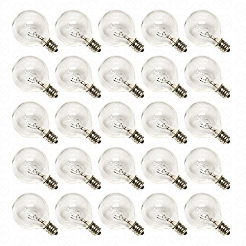 Deneve G40 Clear Glass Globe Bulbs with Candelabra Screw Base, Pack of 25
