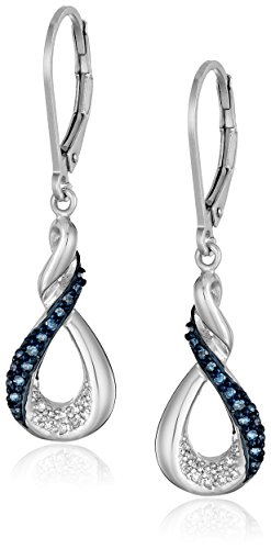 Sterling Silver Blue and White Diamond Drop Earrings (1/5 cttw, I-J Color, I2-I3 Clarity)