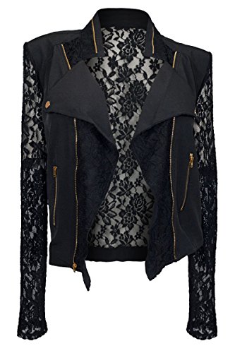 eVogues Plus Size Open Front Lace Sleeve Jacket Black - 3X