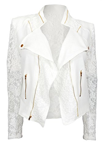eVogues Plus Size Open Front Lace Sleeve Jacket White - 2X