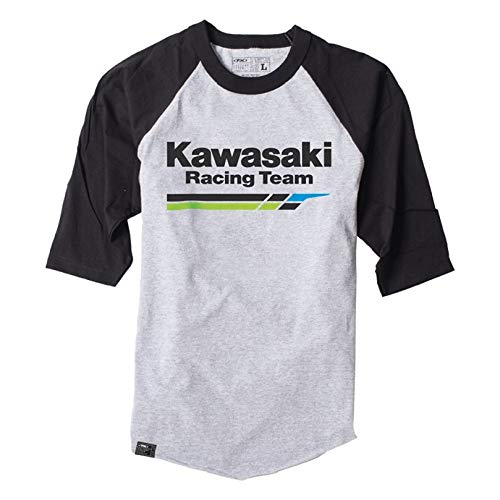 Factory Effex (17-87124) 'KAWASAKI' Raglan Baseball Shirt (Heather Gray/Black, Large)