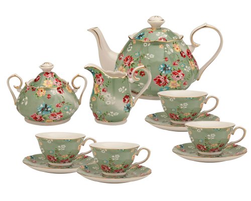 Gracie China by Coastline Imports Shabby Rose Green 11-Piece Tea Set