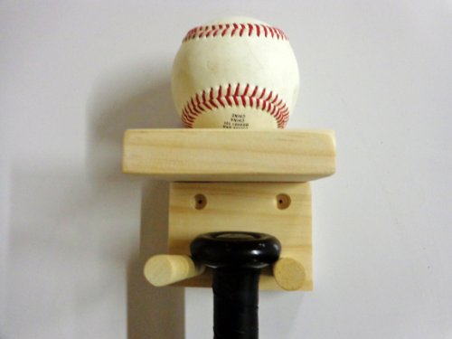 Baseball Bat Rack and Ball Holder Display Meant to Hold 1 Full Size Bat and 1 Baseball Natural Pine Select Wood