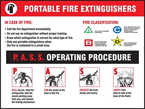 Accuform PST412 Safety Awareness Poster,"Portable FIRE EXTINGUISHERS - P.A.S.S. Operating Procedure", 18" Length x 24" Width, Laminated Flexible Plastic