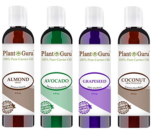Carrier Oil Variety Set 4 oz Cold Pressed 100% Pure Natural Almond, Avocado, Coconut Fractionated, Grapeseed. For Aromatherapy Essential Oils, Skin & Hair Growth Moisturizer. Perfect for Body Massage.