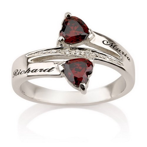 Engraved Ring Sterling Silver Simulated Birthstone Ring Heart Ring Couples Ring Split Band Ring