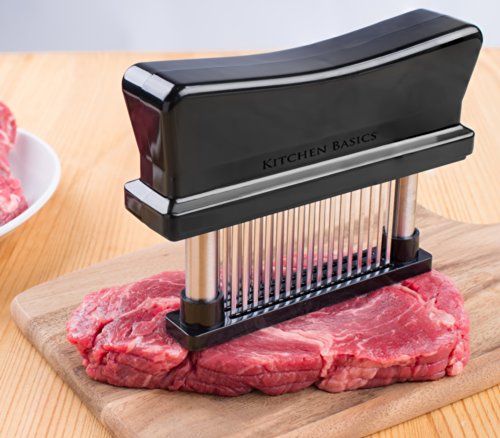 Kitchen Basics 48 Blade Meat Tenderizer Tool, Sharp Stainless-Steel Blades, White