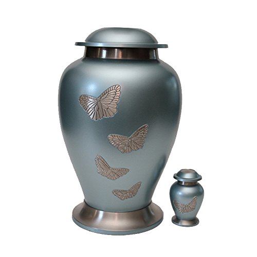 Customized Adult Butterfly Cremation Urn, Blue Funeral Urns With Keepsake and Personalisation