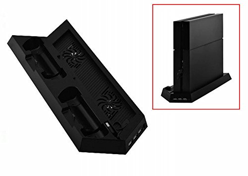 Aweek® PlayStation 4 PS4 Gaming Console 2 Cooling Coolers Fans With Dual USB Charger Dock Station Charging Bracket Stand Build-in 3 Port USB HUB - Black