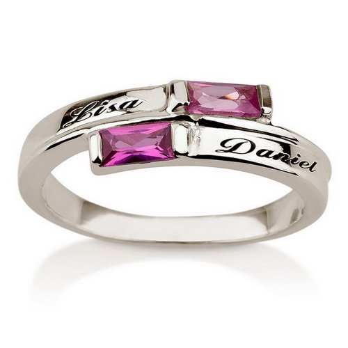 Engraved Ring Sterling Silver Simulated Birthstone Personalzied Ring Couples Ring Split Band Ring