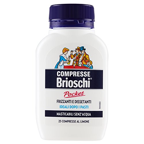Brioschi: "Compresse Pocket" Effervescent Antacid Chewable Tablets, Lemon Taste * 25 Grams, in the amount of 25 Tablets * [ Italian Import ]