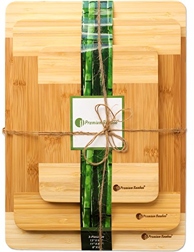 ♻ Extra Thick Eco-Friendly Bamboo Cutting Board Set - 3 Piece set of Thick, Strong, and Durable Bamboo Wood Cutting Board With Beautiful White Edge by Premium Bamboo