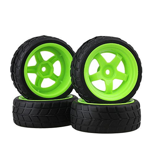 BQLZR Black and Green RC 1: 10 On-road Racing Car Plastic Wheel Rims&Rubber Tires Pack of 4