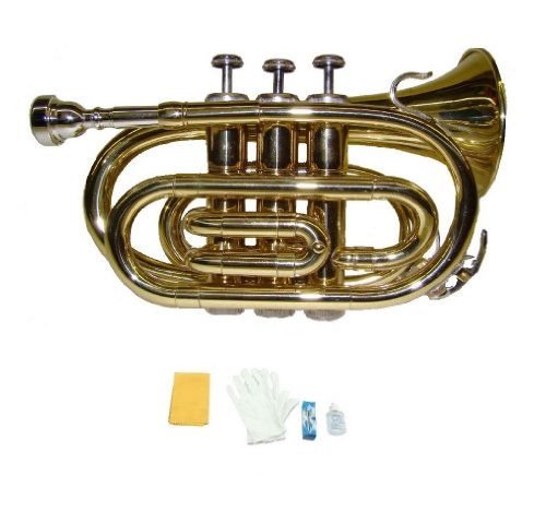 Merano B Flat Gold Brass Pocket Trumpet with Case+Mouth Piece;Valve oil;A Pair Of Gloves;Soft Cleaning Cloth