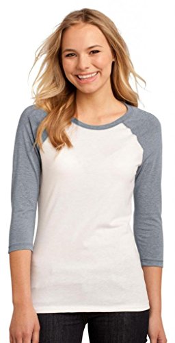 Juniors 50/50 3/4-Sleeve Raglan Tee - Heathered Nickel/White - Small