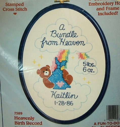 A Bundle From Heaven Baby Announcement Stamped Cross Stitch Kit