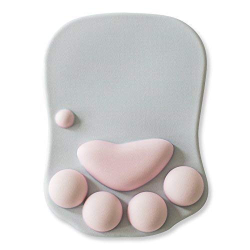 [Cat Paw] Soft Silicone Wrist Rests Cute Wrist Cushion Mouse Pad, Grey+Pink, 7.9x11.4